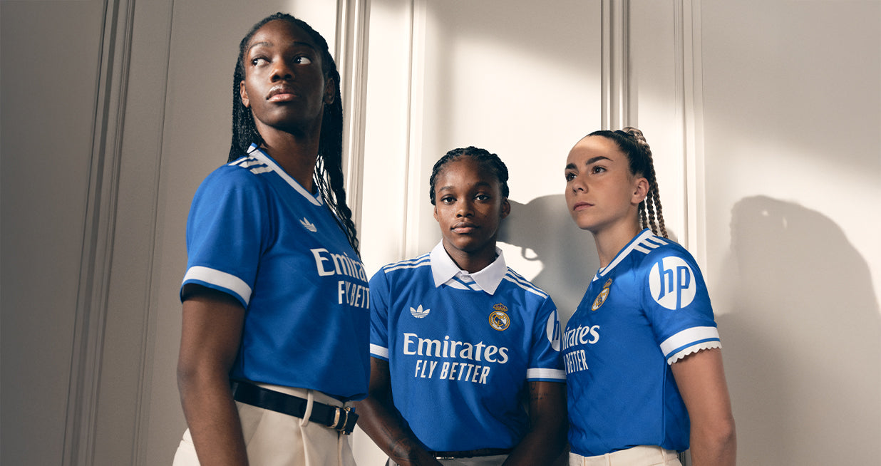 La nueva Tercera Equipación de Mujer del Real Madrid 25/26 es mucho más que una camiseta: es historia, diseño y moda materializados en una pieza única. Inspirada en los icónicos asientos azules del antiguo Santiago Bernabéu, fusiona el legado futbolístico del club con la esencia de la cultura contemporánea. Las míticas bandas serradas en blanco hacen un guiño a la clásica caja azul 'Bluebird' de zapatillas adidas, mientras que un sutil motivo diagonal en el tejido añade textura y profundidad. Además, para las versiones Authentic, el interior incluye un detalle muy especial: la frase “90 minuti en el Bernabéu son molto longo”, un diseño que rinde homenaje a la atmósfera que viven los equipos visitantes en el Bernabéu.